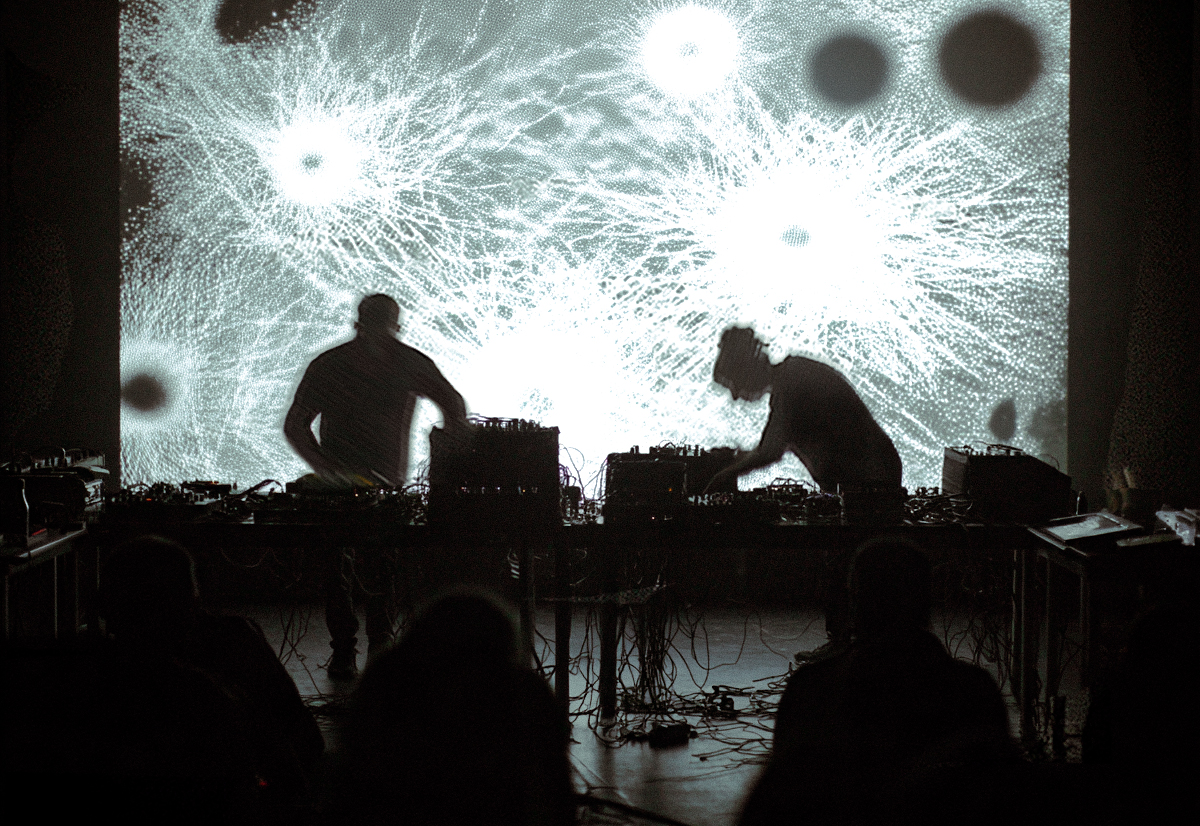 Sound travels throughout the room via multichannel spatial audio, while large-scale projections translate musical and physical gesture into evolving visual form. No two moments are the same — the performance itself becomes a living system shaped by dialogue between human creativity and computational response.